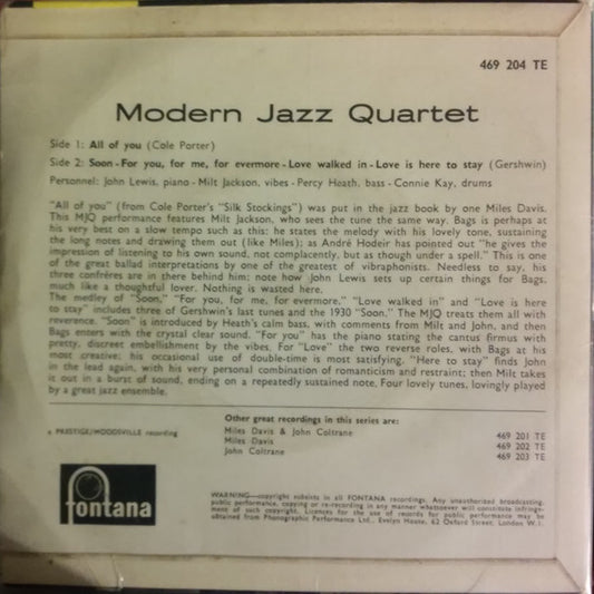 The Modern Jazz Quartet - All Of You / Medley - UK 7" 1964 - VG+Regular price £5.00 GBPRegular priceUnit price / per-
