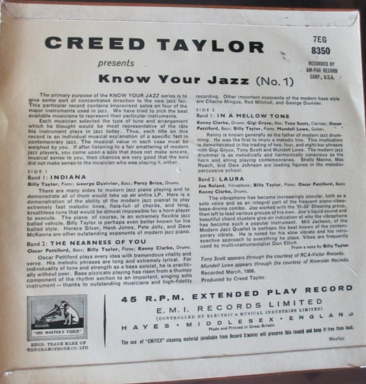 Billy Taylor - Oscar Pettiford - Kenny Clarke - Joe Roland - Creed Taylor Presents "Know Your Jazz No. 1 - The Rhythm Section - UK 7" 1956 - VGRegular price £5.00 GBPRegular priceUnit price / per-