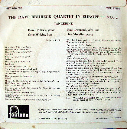The Dave Brubeck Quartet - In Europe - No. 2 - UK 7" 1958 - VG+Regular price £5.00 GBPRegular priceUnit price / per-
