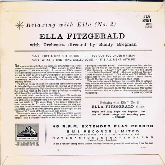 Ella Fitzgerald With The Buddy Bregman Orchestra - Relaxing With Ella (No. 2) - UK 7" 1959 - VG+Regular price £5.00 GBPRegular priceUnit price / per-