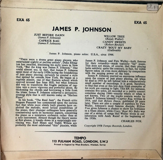 James Price Johnson - James P. Johnson - UK 7" 1958 - VG+Regular price £5.00 GBPRegular priceUnit price / per-