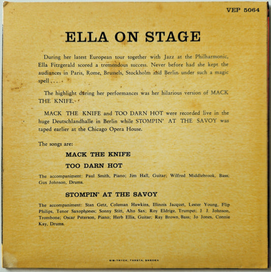 Ella Fitzgerald - Ella On Stage - Sweden 7" 0 - VG+Regular price £5.00 GBPRegular priceUnit price / per-