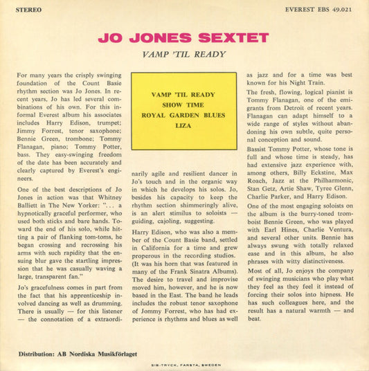 Jo Jones And His Orchestra - Vamp 'Til Ready - Sweden 7" 0 - VG+