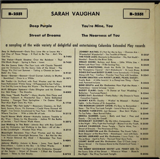 Sarah Vaughan - Deep Purple - US 7" 1958 - VG+