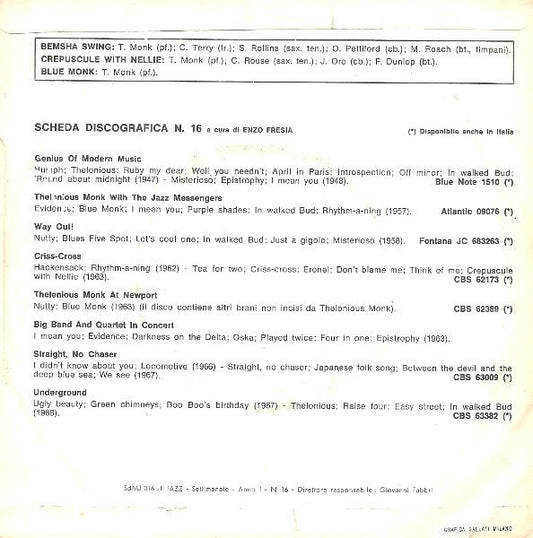Thelonious Monk - Thelonious Monk - Italy 7" 1969 - VG+