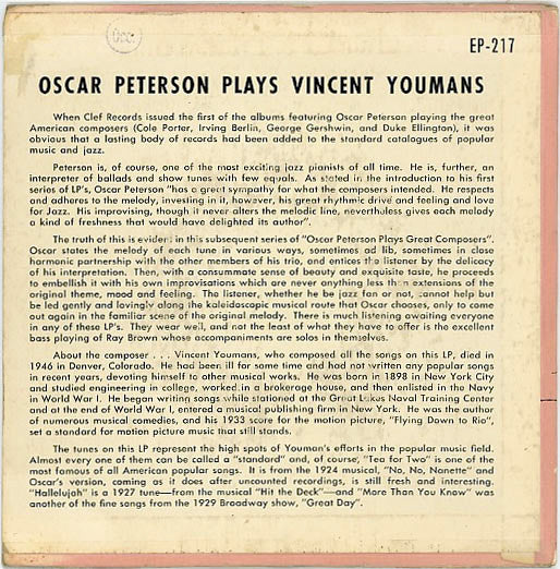 Oscar Peterson - Oscar Peterson Plays Vincent Youmans - US 7" 1954 - VG+