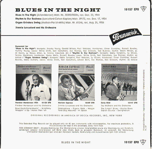 Jimmie Lunceford - Blues In The Night - Germany 7" 1959 - VG+