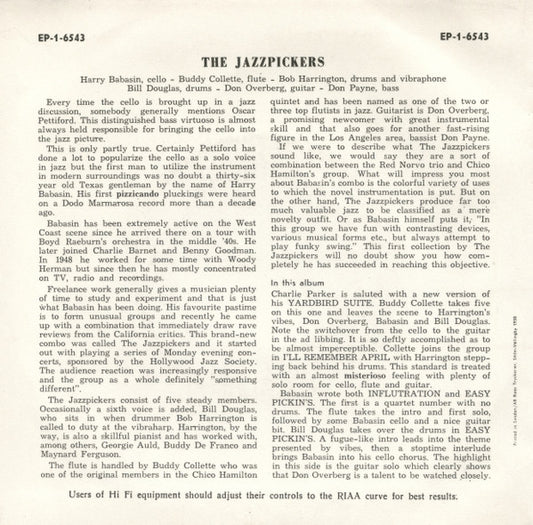 Harry Babasin And The Jazz Pickers - For Moderns Only - Sweden 7" 1958 - VG+