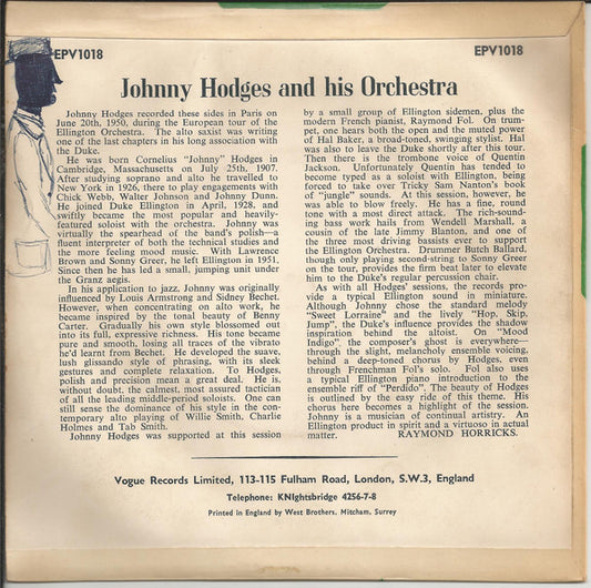 Johnny Hodges And His Orchestra - The "Rabbit" - UK 7" 1955 - VG+