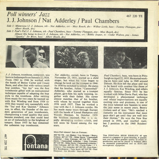 J.J. Johnson / Nat Adderley / Paul Chambers - Misterioso - Netherlands 7" 1960 - VG+