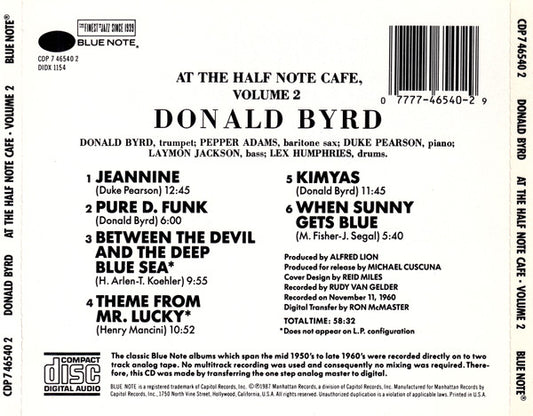 Donald Byrd - At The Half Note Cafe • Volume 2 - US CD 1987 - VG+