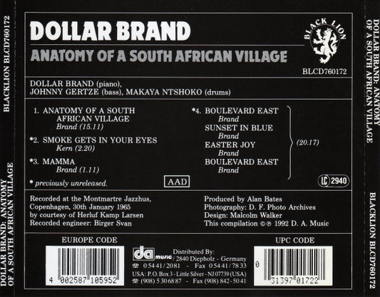 Dollar Brand - Anatomy Of A South African Village - UK, Europe & US CD 1992 - VG+