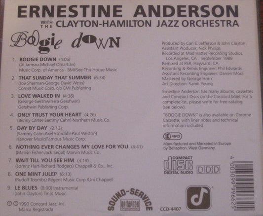 Ernestine Anderson With The Clayton-Hamilton Jazz Orchestra - Boogie Down (CD, Album) Europe 1990 VG+