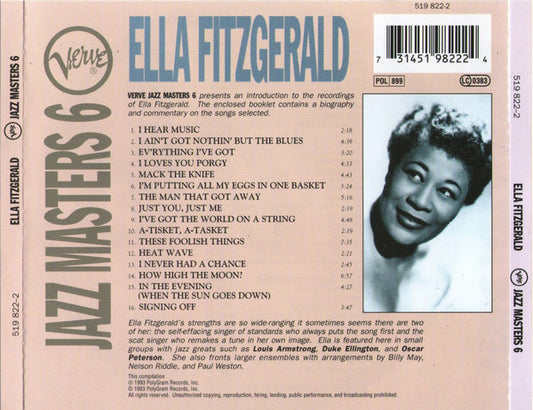 Ella Fitzgerald - Verve Jazz Masters 6 (CD, Comp) Europe 0 NM or M-