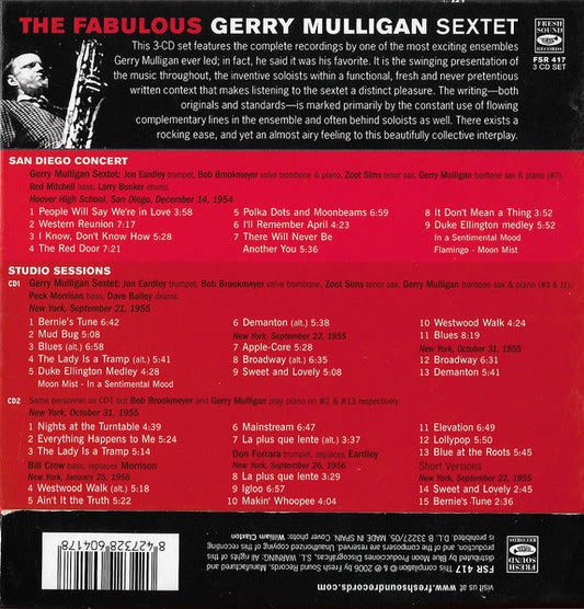 Gerry Mulligan And His Sextet - The San Diego Concert 1954 (The Beginning!) And The Complete Studio Sessions 1955-1956 - Spain 3xCD 2006 - VG+
