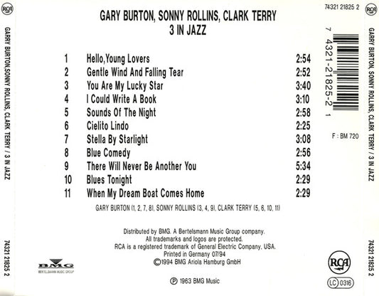Gary Burton, Sonny Rollins, Clark Terry - 3 In Jazz - Germany CD 1994 - VG+