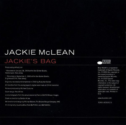 Jackie McLean - Jackie's Bag (CD, Album, RE, RM) Europe 2003 NM or M-