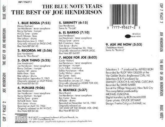 Joe Henderson - The Best Of Joe Henderson - Europe CD 1991 - VG+
