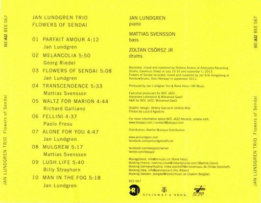 Jan Lundgren Trio - Flowers Of Sendai - Europe CD 2014 - VG+
