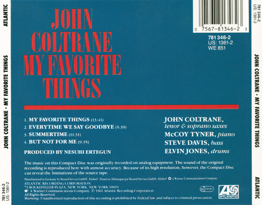 John Coltrane - My Favorite Things (CD, Album, RE, RM) Europe 0 VG+