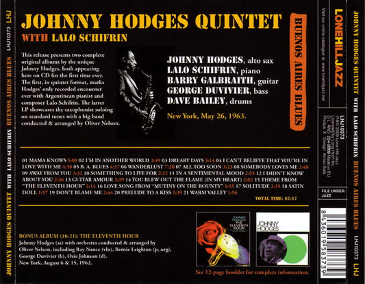 Johnny Hodges Quintet With Lalo Schifrin - Buenos Aires Blues - Spain CD 2009 - VG+