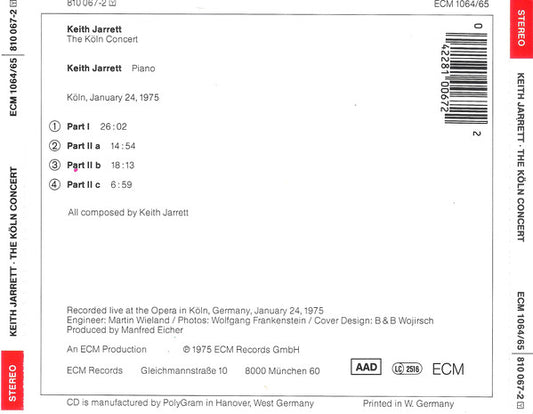 Keith Jarrett - The Köln Concert - Germany CD 0 - VG+