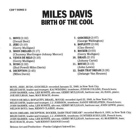 Miles Davis - Birth Of The Cool (CD, Album, Comp, RE) UK 1989 NM or M-