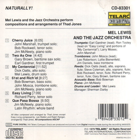 Mel Lewis And The Jazz Orchestra - Naturally! (CD, Album, RE) US 1992 VG+