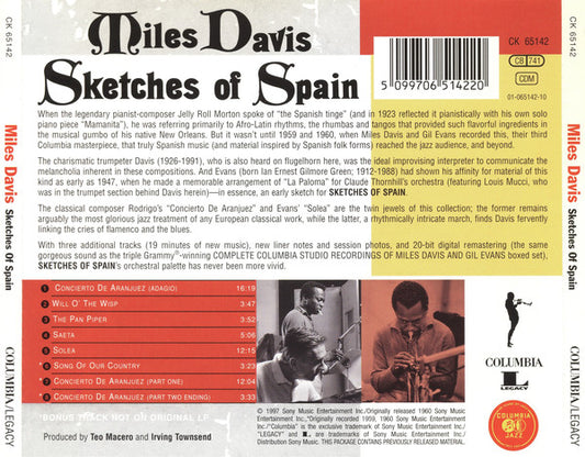 Miles Davis - Sketches Of Spain (CD, Album, RE, RM) Europe 1997 NM or M-