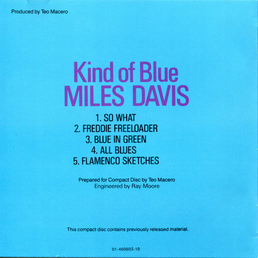 Miles Davis - Kind Of Blue (CD, Album, RE, RM, NON) Europe 1997 VG+