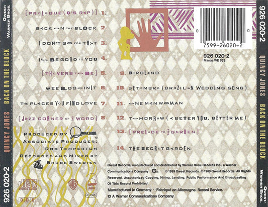 Quincy Jones - Back On The Block - Europe CD 1989 - VG+