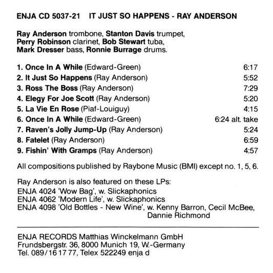 Ray Anderson - It Just So Happens - Germany CD 1987 - VG+