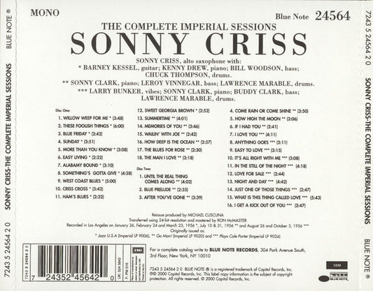 Sonny Criss - The Complete Imperial Sessions - Europe 2xCD 2000 - VG+
