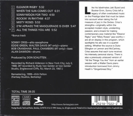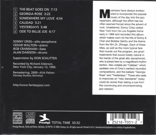 Sonny Criss - The Beat Goes On! - US CD 2000 - VG+
