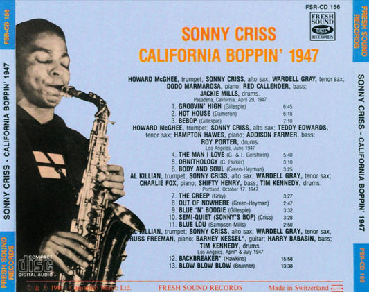 Sonny Criss - California Boppin' 1947 - Switzerland CD 1991 - VG+