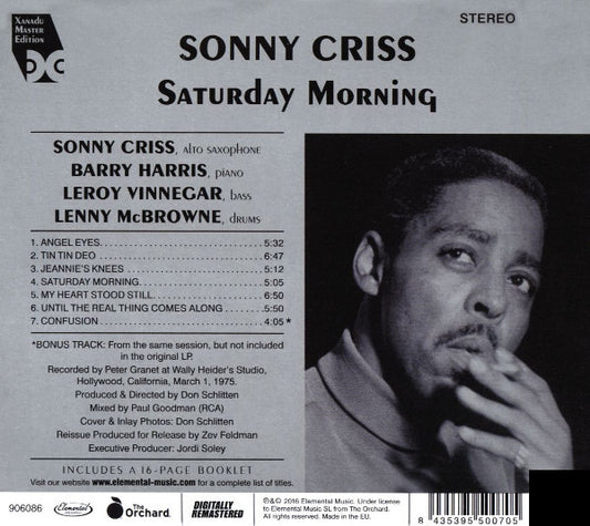 Sonny Criss - Saturday Morning - UK, Europe & US CD 2016 - VG+