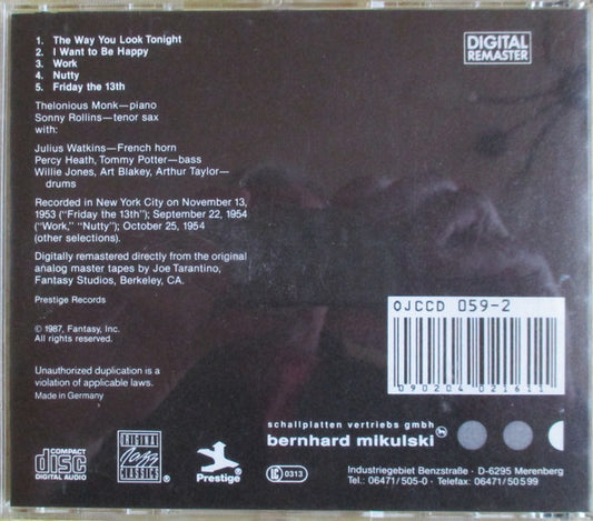 Thelonious Monk / Sonny Rollins - Thelonious Monk / Sonny Rollins (CD, Comp, RE, RM) Germany 1987 NM or M-