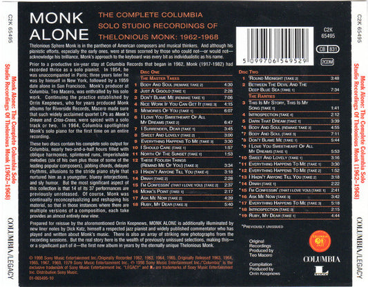 Thelonious Monk - Monk Alone: The Complete Columbia Solo Studio Recordings 1962-1968 - Europe 2xCD 1998 - VG+