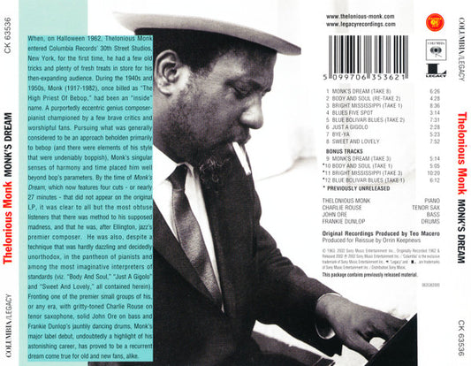 The Thelonious Monk Quartet - Monk's Dream (CD, Album, RE, RM) Europe 2002 VG+