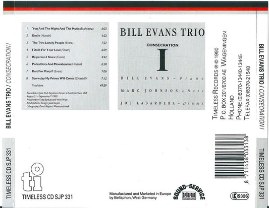 Bill Evans Trio* - Consecration I - Europe CD 1990 - VG+