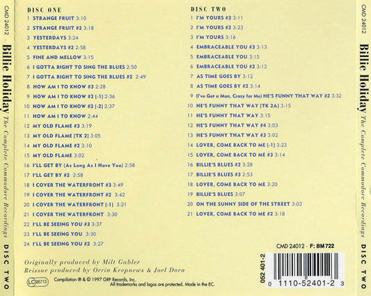Billie Holiday - The Complete Commodore Recordings - Europe 2xCD 1997 - VG+