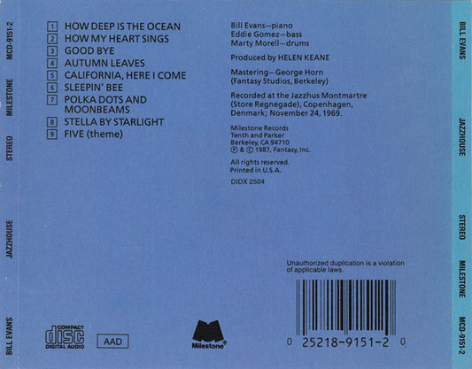Bill Evans - Jazzhouse - US CD 1987 - VG+