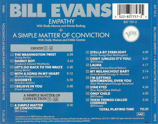 Bill Evans - Empathy + A Simple Matter Of Conviction - US CD 1989 - VG+