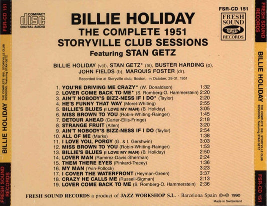 Billie Holiday Featuring Stan Getz - The Complete 1951 Storyville Club Sessions - Switzerland CD 1990 - VG+