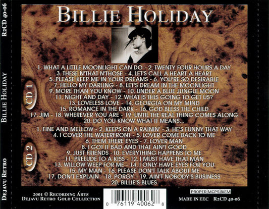 Billie Holiday - The Gold Collection: 40 Classic Performances (2xCD, Comp, Dlx) Europe 2001 NM or M-