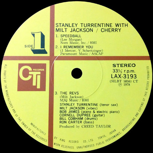 Stanley Turrentine With Milt Jackson - Cherry (LP, Album, Ltd, RE) Japan 1978 NM or M-