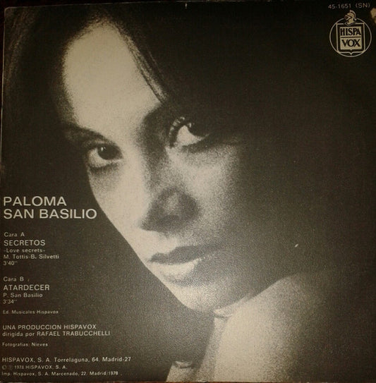 Paloma San Basilio - Secretos (7") Spain 1978 VG+