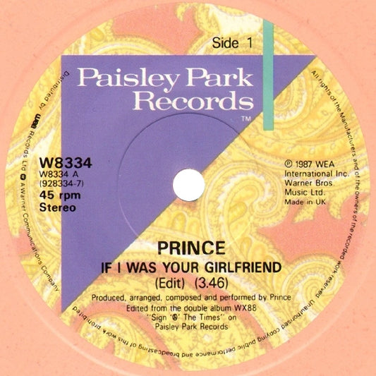 Prince - If I Was Your Girlfriend - UK 7" 1987 - NM or M-