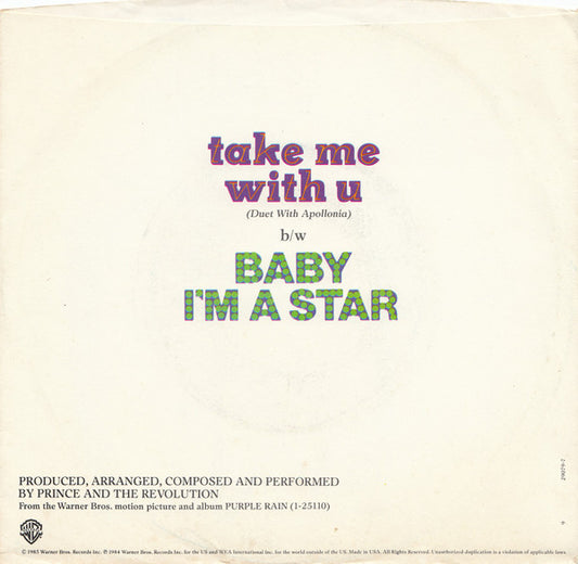 Prince And The Revolution - Take Me With U - US 7" 1985 - VG+