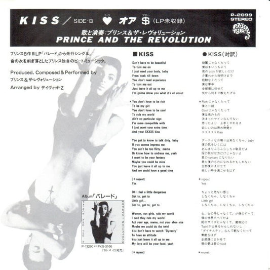 Prince And The Revolution = プリンス & ザ・レヴォリューション* - Kiss - Japan 7" 1986 - NM or M-